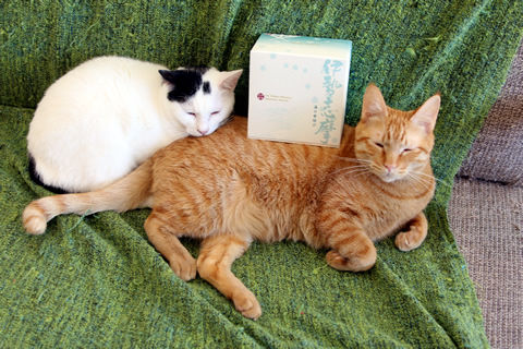 猫たちにおやつをいただきました。ふりかけとちゅ~るです!