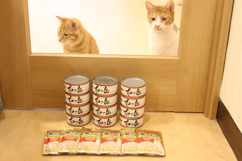猫たちにおやつやごはん、缶詰をいただきました