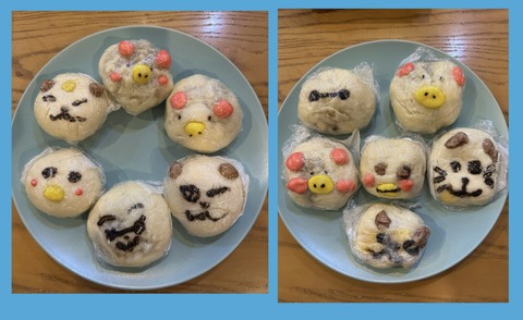 双子が作った肉まん(肉見えてるやん)