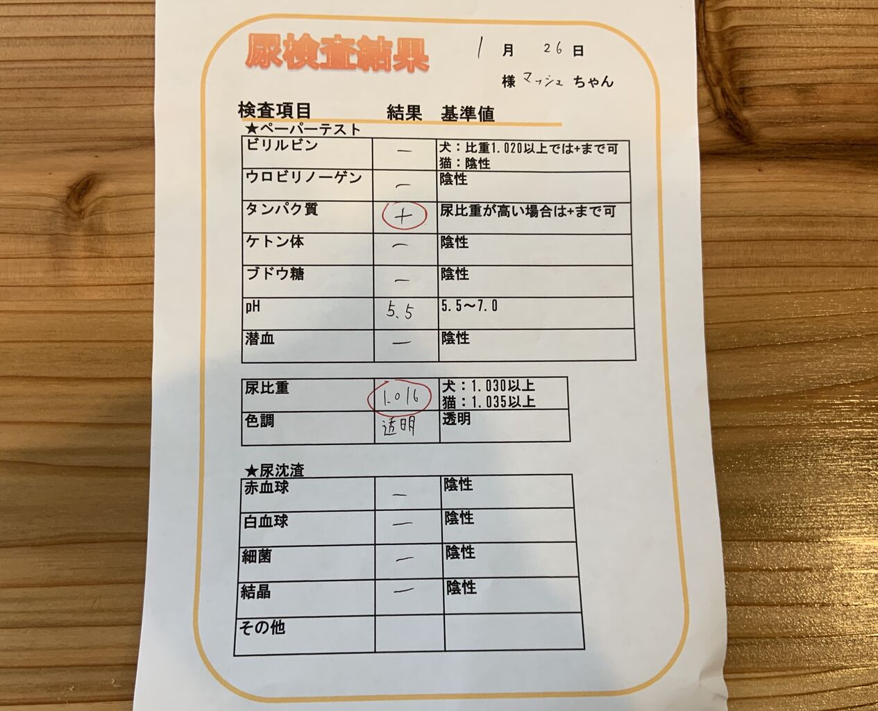 ただ、尿検査の結果、やはり尿比重が低かったです。