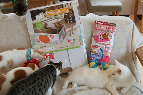 猫たちにおもちゃの差し入れをいただきました